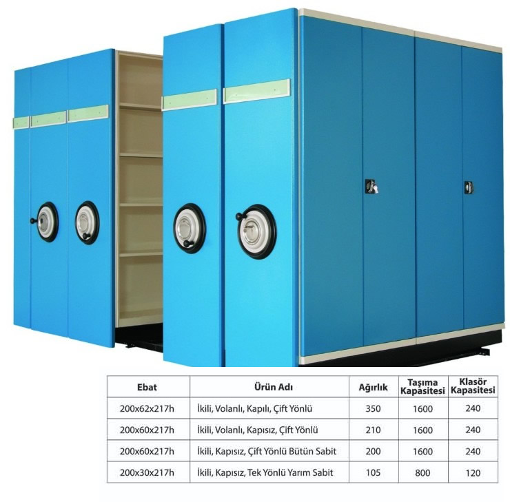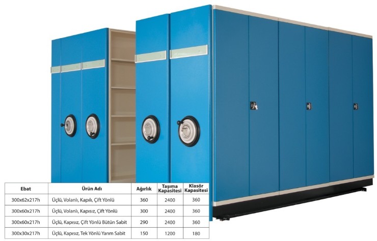 Kompakt Arşiv Sistem, kullanım alanlarına ve kullanıcı ihtiyaçlarına göre çeşitli yükseklik, genişlik ve derinlikte üretilmektedir.